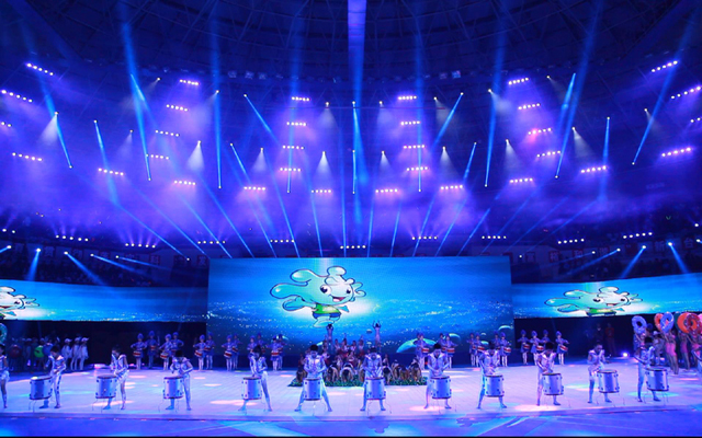 ??我公司負(fù)責(zé)LED視頻設(shè)計,現(xiàn)場視頻高清導(dǎo)播。臺州市首屆體育大會開幕式暨大型文體表演在椒江體育中心隆重舉行,共有來自各縣(市、區(qū))、各行業(yè)系統(tǒng)和部分企業(yè)的代表團(tuán)近千人參加了開幕式。開幕式文體表演的主題是“生命·陽光”,分為序曲《生命》、上篇《山海的交響》、下篇《城市的脈動》和尾聲《陽光》四個部分。 。