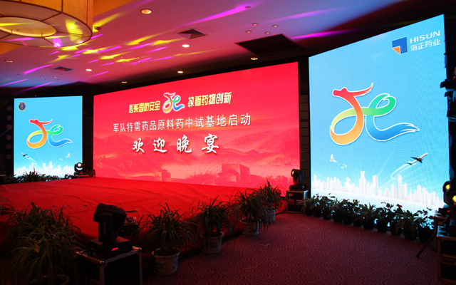 ??舞美工程、高清設(shè)計制作LED視頻內(nèi)容。海正軍需藥品啟動儀式。