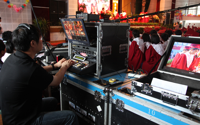 洪家中學(xué)2013屆高三畢業(yè)典禮 我公司負(fù)責(zé)現(xiàn)場LED屏幕設(shè)計、搭建、導(dǎo)播。以及現(xiàn)場六機(jī)位高清錄播。