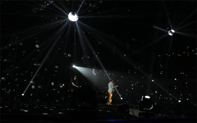無(wú)錫體育館演唱會(huì)用了吊頂屏幕,舞臺(tái)四面對(duì)著觀眾,現(xiàn)場(chǎng)PGM信號(hào)上傳4個(gè)同步屏幕,林志炫、彭佳慧演出喜歡跟觀眾互動(dòng),跟拍的無(wú)線斯坦尼康。