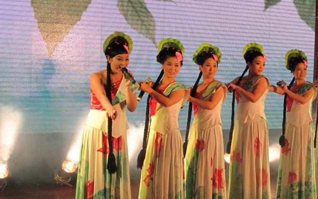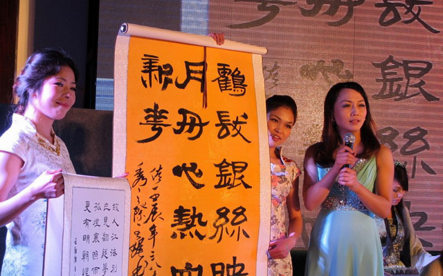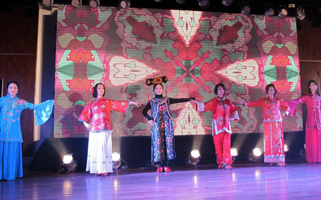 ??女教職工才藝展示,首先在市聯(lián)合藝術學校的器樂小合奏《金蛇狂舞》中拉開序幕,接著是市中心幼兒園24位女教工表演了以《秀》為主題的時裝表演,有錦園小學鐘丹卿等9人的歌伴舞《西廂聽琴》,然后是大溪四中、溫西中學、松門三小、市實驗學校、箬橫鎮(zhèn)中、松門小學等校女教師表演的書法、國畫和剪紙,并當場向臺下的領導和觀眾贈送自己的作品,許黎野副市長上臺接受禮品,并向全市女教工表示節(jié)日祝賀。聯(lián)合藝校、澤國三中、三星小學、太平小學女教師表演的古箏合奏,中間串插著給男同胞做衣服游戲,引得大家哈哈大笑。還有市職技校女教師的獨舞《翠狐》,大溪小學、岙環(huán)中學、松門三小、城北小學、市職枝校等校的中外歌曲聯(lián)唱,還有市四中、澤國四中、橫湖小學、方城小學的詩歌朗誦和大溪小學的《數蛤蟆》,最后在澤國中學、松門三小、市中心幼兒園熱鬧的歌伴舞《愛我中華》中降下帷幕。與會領導上臺向女教職工祝賀演出成功并合影留言。